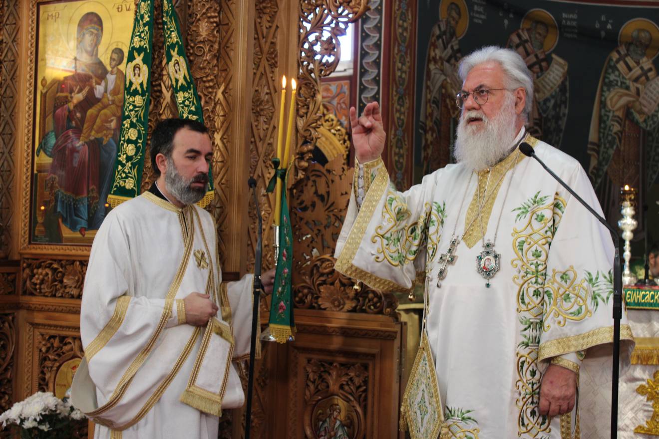 Πριν την Οπισθάμβωνο ευχή ο Σεβασμιώτατος με αφορμή τον πέμπτο ειρμό του κανόνα του Σταυρού: «Ὀρθρίζοντες σὲ ἀνυμνοῦμεν, Σωτὴρ τοῦ Κόσμου εἰρήνην, εὑράμενοι τῷ Σταυρῷ σου, δι οὗ ἀνεκαίνισας, τὸ γένος τὸ ἀνθρώπινον, φῶς πρός ἀνέσπερον ἄγων ἡμᾶς» ανέλυσε το σημείο του Σταυρού, την ειρήνη που χαρίζει ο ειρηνοποιός Χριστός και το ανέσπερο φως της Αναστάσεως, στο οποίο οδηγεί η σταυρική θυσία του Χριστού μας με αποτέλεσμα την ανακαίνιση του ανθρωπίνου γένους, την λύτρωσή του από την αμαρτία και τον θάνατο και την αποκατάστασή του ως τέκνο του Θεού στον νέο Παράδεισο της Βασιλείας Του, την Εκκλησία Του.