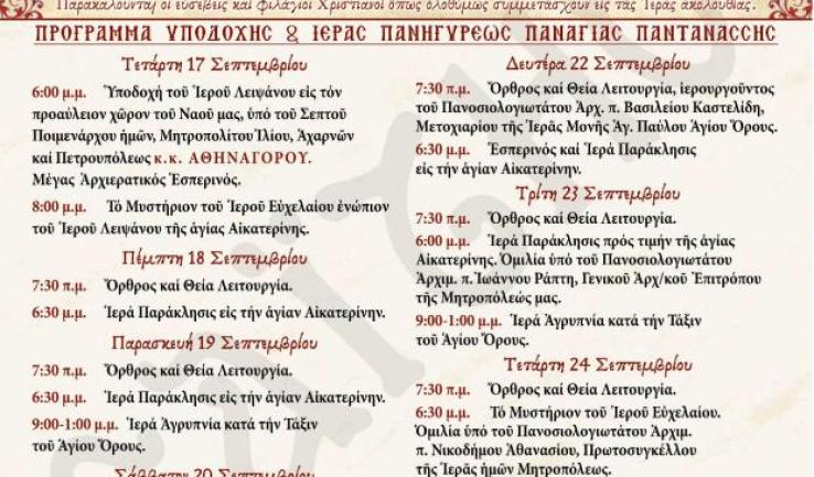 Πανήγυρις Παναγίας Παντάνασσας και προσκύνημα τιμίας χειρός Αγίας Αικατερίνης