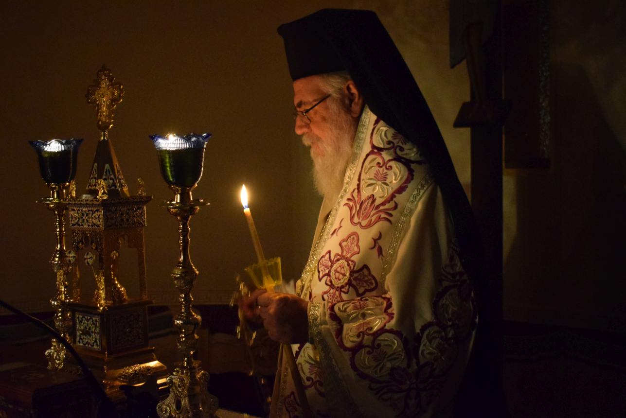 Στο κήρυγμά του ο Σεβασμιώτατος ανέλυσε τον στίχο ενός εκ των τροπαρίων του Εσπερινού «Χαίρε, Σταυρέ, Ξύλον Ζωής και Άδου καθαιρέτα», αναφερόμενος στην ύπαρξη των δύο δένδρων του Παραδείσου, αυτού της γνώσεως του καλού και του κακού και του δένδρου της ζωής. Η γεύση του καρπού του πρώτου δένδρου από τον Αδάμ και την Εύα έφερε στον κόσμο μας την φθορά, την αρρώστια και τον θάνατο. Η γεύση του καρπού του δένδρου της ζωής, που είναι ο Χριστός, με την προσφορά του Σώματος και του Αίματός του μας χορηγεί τη ζωή και την αθανασία.