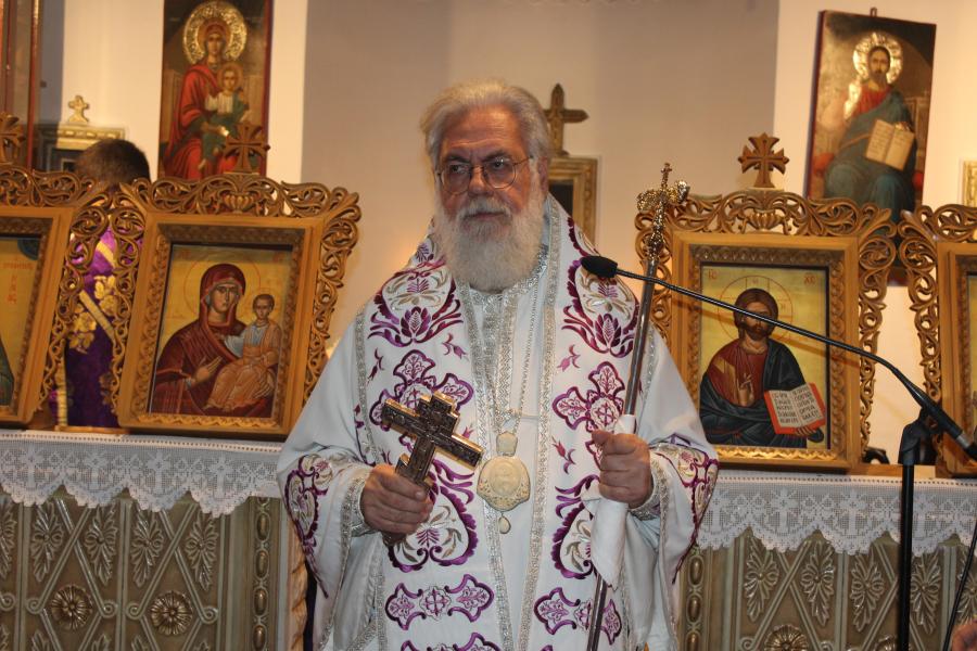 Πριν την οπισθάμβωνο ευχή ο Σεβασμιώτατος ανέλυσε το πρώτο ανάγνωσμα της ακολουθίας, το οποίο αναφερόταν στην είσοδο των διαφόρων ζώων στην Κιβωτό του Νώε, πριν τον κατακλυσμό. Την διήγηση αυτή από το βιβλίο της «Εξόδου» της Παλαιάς Διαθήκης την παρομοίωσε ως προτύπωση της νέας Κιβωτού, της Εκκλησίας του Χριστού, όπου όσοι εισέρχονται σώζονται από τις τρικυμίες και τα ναυάγια της καθημερινότητας, καθώς βρίσκονται κάτω από την προστασία του Χριστού.